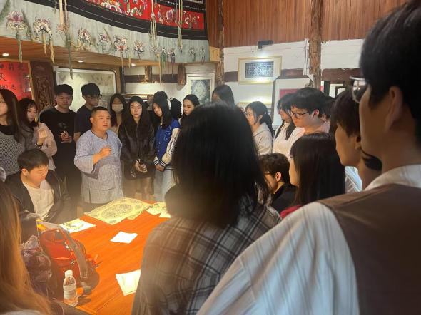 研习期间,师生走进里耶秦简博物馆、黄永玉艺术馆与沈从文纪念馆,展开了一场跨时空对话。在秦简的律令文书中追溯中华治理智慧,黄永玉的诙谐笔墨间感受“艺术扎根生活”的真谛,再随沈从文的文字走进湘西人文地理。参观学习后,数字媒体艺术、视觉传达设计专业教师引导学生思考“如何将文化IP转化为文旅设计资源?”