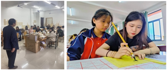 2023年5月14日,我院2021级美术学(师范)专业1班同学开始了为期一个学期的教育见习,见习地点分别是张家界市永定区沙堤芙蓉学校、张家界市永定区天门山镇芙蓉学校。主要内容以书法教学为主,为乡村中学生进行书法知识的普及推广,以美育美,为乡村中学生的全面发展提供空间,实施全面的素质教育,助力了当地学校的美育工作。