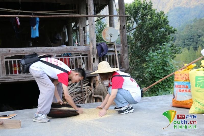 图为志愿者在走访期间,帮助农户做农活。中国青年网通讯员 李景芬 摄