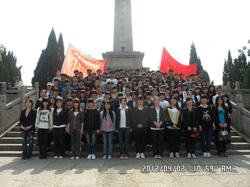 到达烈士陵园,志愿者们首先瞻仰各个时期烈士石碑,并在人民英雄纪念碑前向革命先烈们致以崇高的敬意;接着文艺部部长赵忆兵讲解湘西英雄事迹;团总支副书记杨毅和学生会主席卓娇发表致辞;社会实践部部长刘艳萍带领志愿者宣誓,呐喊出内心的铮铮誓言;同学们向烈士们鞠躬并敬献小白花;活动最后,大家合影留念。