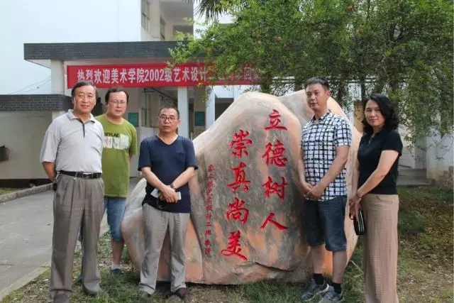 第二项活动是赠石活动。设计二班同学对母校怀有深厚的情感,这一次他们将一块刻有“立德树人、崇真尚美”院训的漂亮石头送给学院,表达对学院感激之情,赠石仪式上,刘俊院长、王文广书记、曾庆世同学发表讲话,并一起合影留念。
