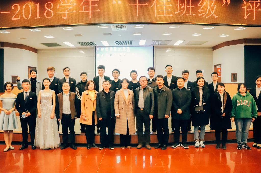 (图为我院领导、班级代表与评委老师的合影)