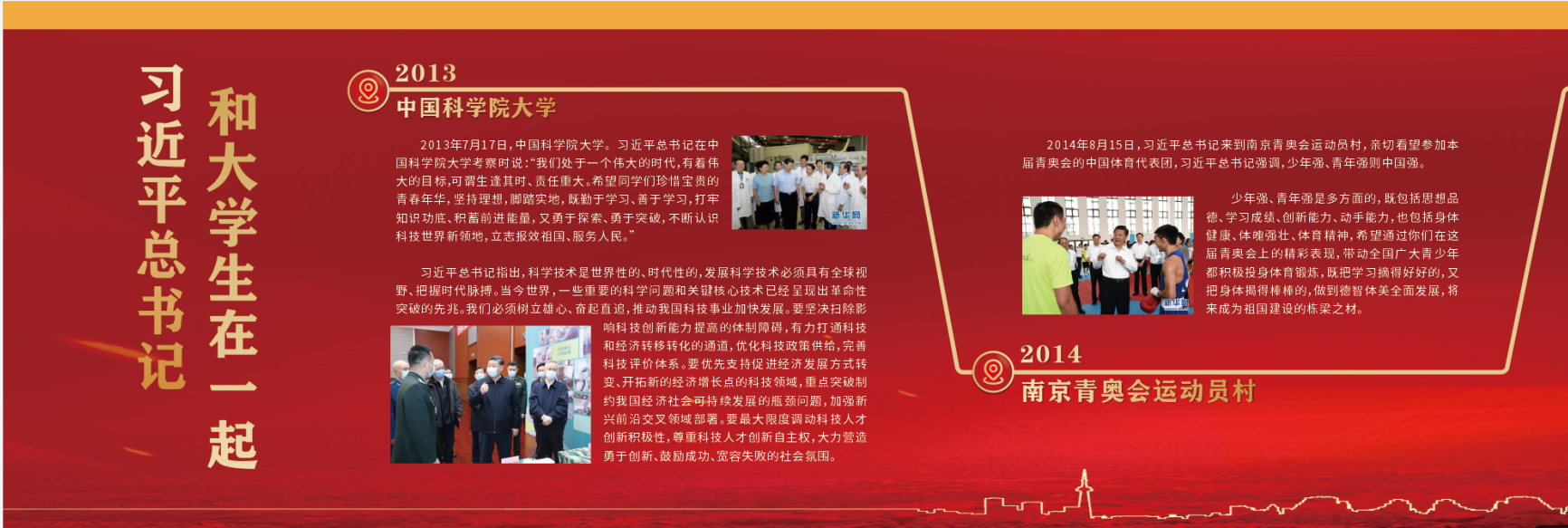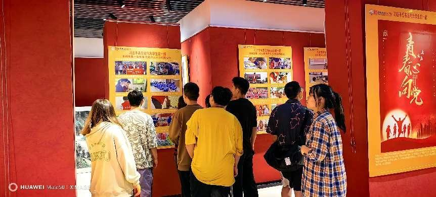 在“习近平总书记与大学生在一起”学习分享活动中,同学们看新闻报道,分享学习视频,交流学习体会。本次展览上,同学们就将习近平总书记从2013年以来关于对青年大学生的寄语、批示展示出来,做成一条长达15米的长轴,让同学们细心体会,认真学习。这些寄语、批示展现了习近平总书记始终站在培养社会主义建设者和接班人、培养担当民族复兴大任时代新人的战略高度关心关爱大学生、教育引导大学生,他用高尚的人格感染学生,用真理的力量感召学生,以丰富的人生经验引导学生,以深厚的理论功底启迪学生,为大学生健康成长成才指明了正确道路,赢得了大学生崇敬爱戴和衷心拥护。