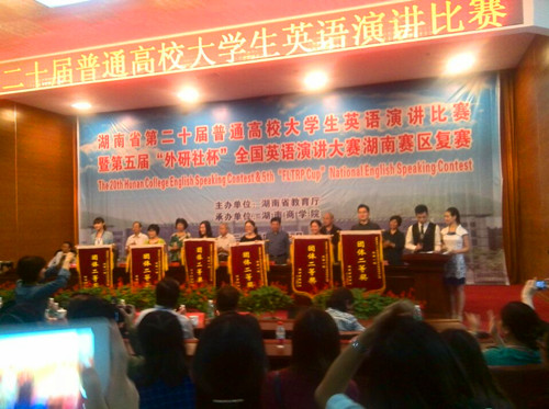 在2014年10月18日湖南商学院举行的“湖南省第二十届普通高校大学生英语演讲比赛暨第五届外研社杯全国英语演讲大赛湖南赛区复赛”中,我院2012级环境艺术班王怡妮同学喜获个人一等奖。