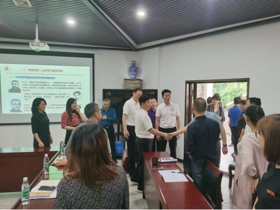 在学习过程中,省教育厅党组成员、驻厅纪检监察组组长曹世凯、省教育厅民族教育处副处长祁怀好、湖南科技大学研究生院副院长曾治国组成的省教育厅党史学习巡回指导组来到我院,对正在举行的理论学习中心组(扩大)开展的“学史崇德”学习进行指导。