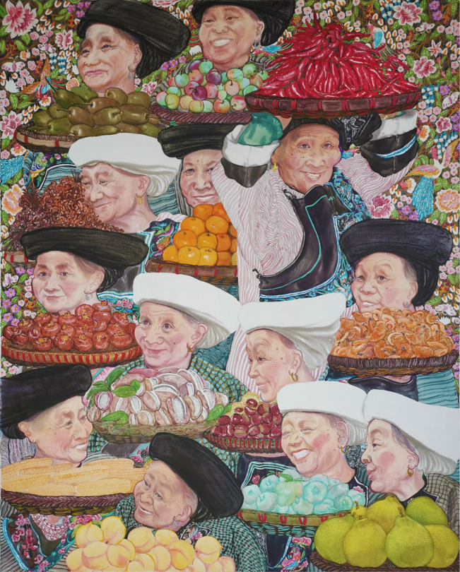 图为硕士生导师田爱华的中国画作品《苗寨人家》