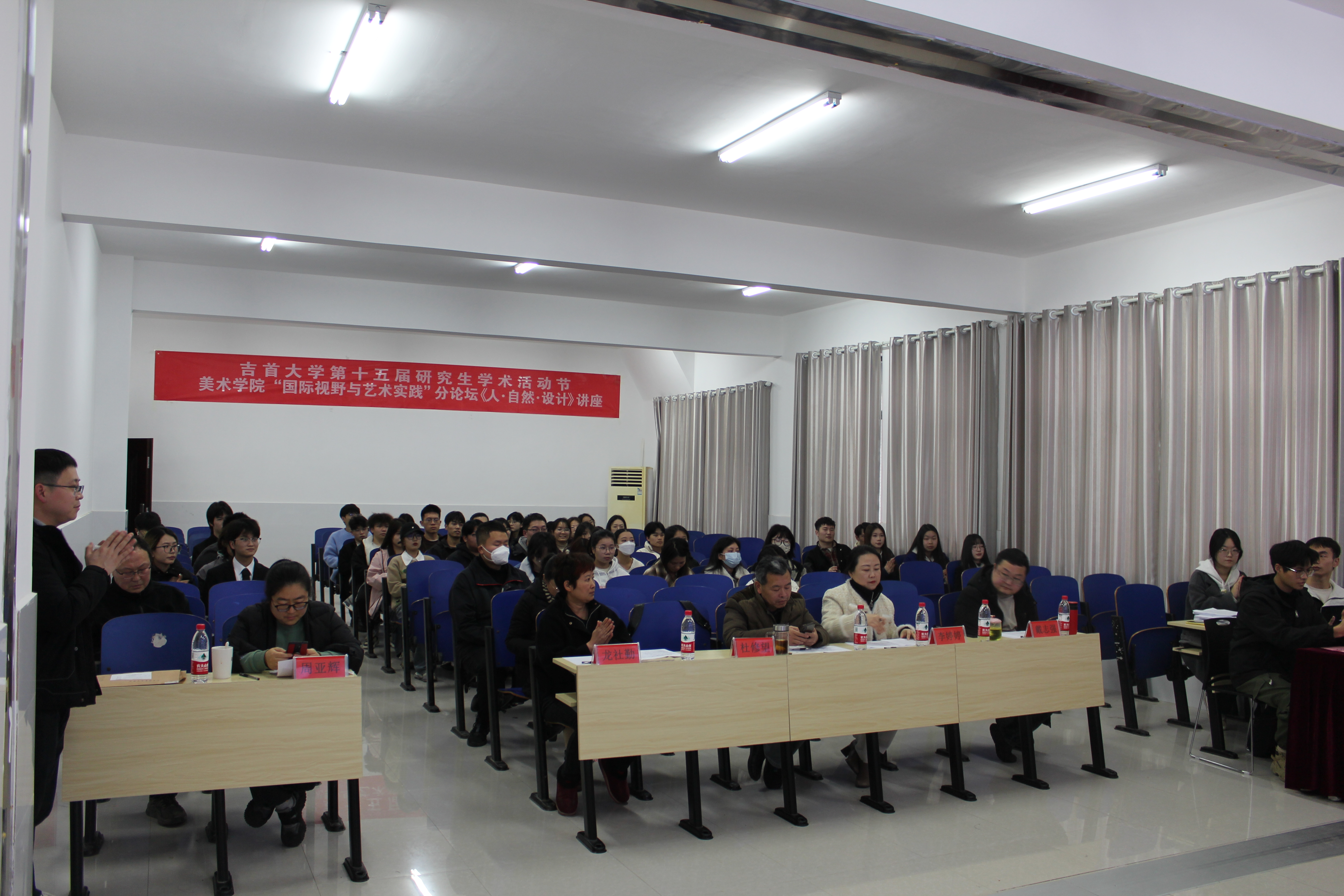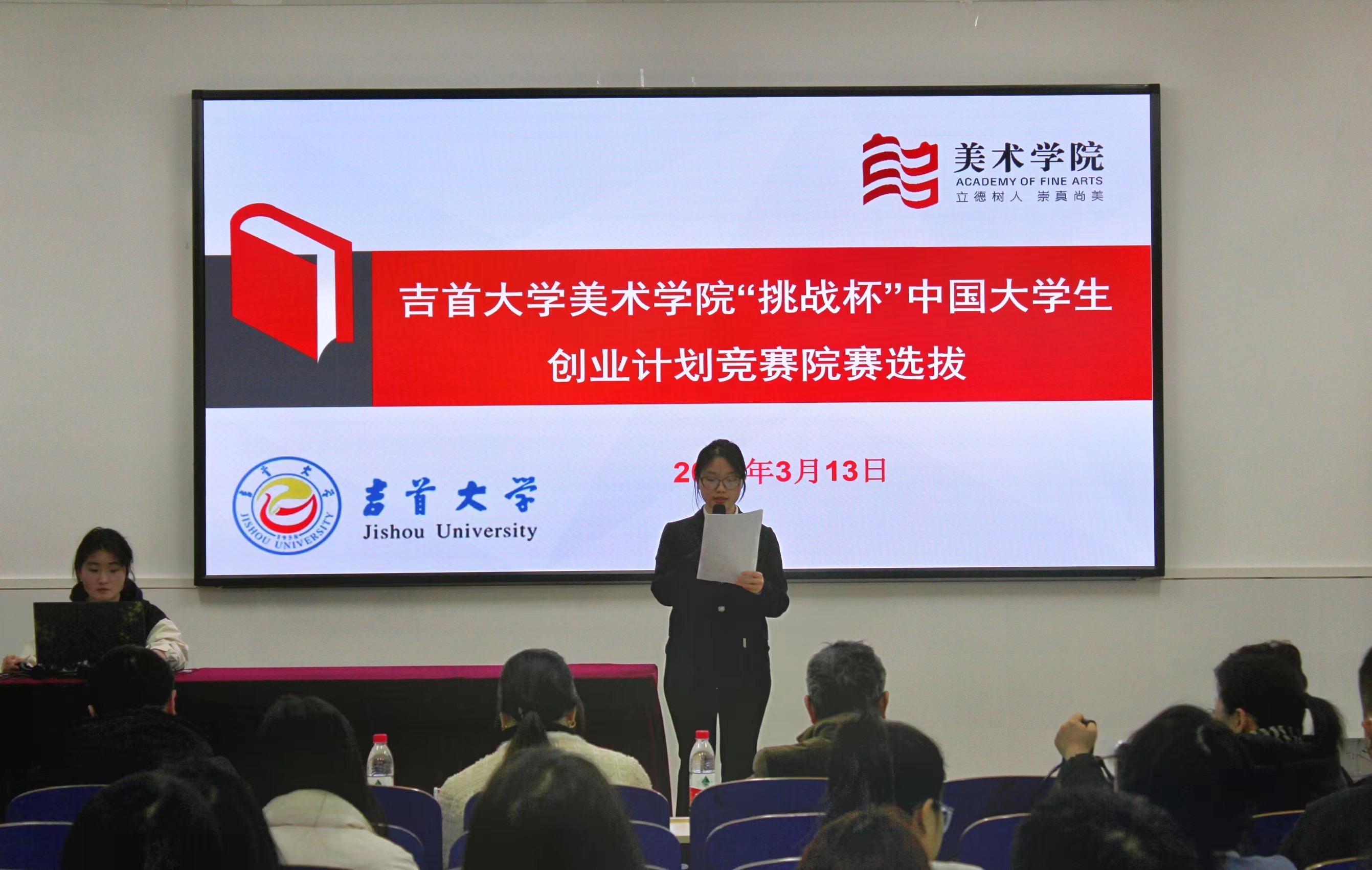 经过项目路演、评委提问、专家点评,最后遴选出“古城探秘——智慧遗址数字化老司城遗址体验中心”、“身临其境—VR智能助力湘西民族村寨保护与再生设计”、“创设云端—传统村落实景虚拟与衍生设计的新文旅模式先行者”、“从大山深处走出来的致富之路——设计助力湘西栗溪村金弹子产业数字化发展”、“通江达海·石羊开泰——乡村环境提质改造引领者”、“种丫丫——一站式智慧农耕云端App”、“魅力国画让物活起来,引领退休人员艺术新国潮”、“传承经典——助力湘西苗族银饰创新发展”、“苗“湘”逐梦——湘西民族文化造“星”计划”、“挑花源记APP——探访湘西苗族挑花之美,助力文创产品升级”,共计10个项目代表学院参与校赛。