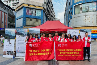 8月1日在老师的带领下,团队成员还在吉首街道办等相关部门的支持下在吉首八月楼商业广场布置宣传亭开展宣讲活动,面向吉首市区居民进行古村落建筑保护的重要宣讲,号召大家携手保护古村落建筑,希望在行动上影响更多的人参与到此次科普活动中。