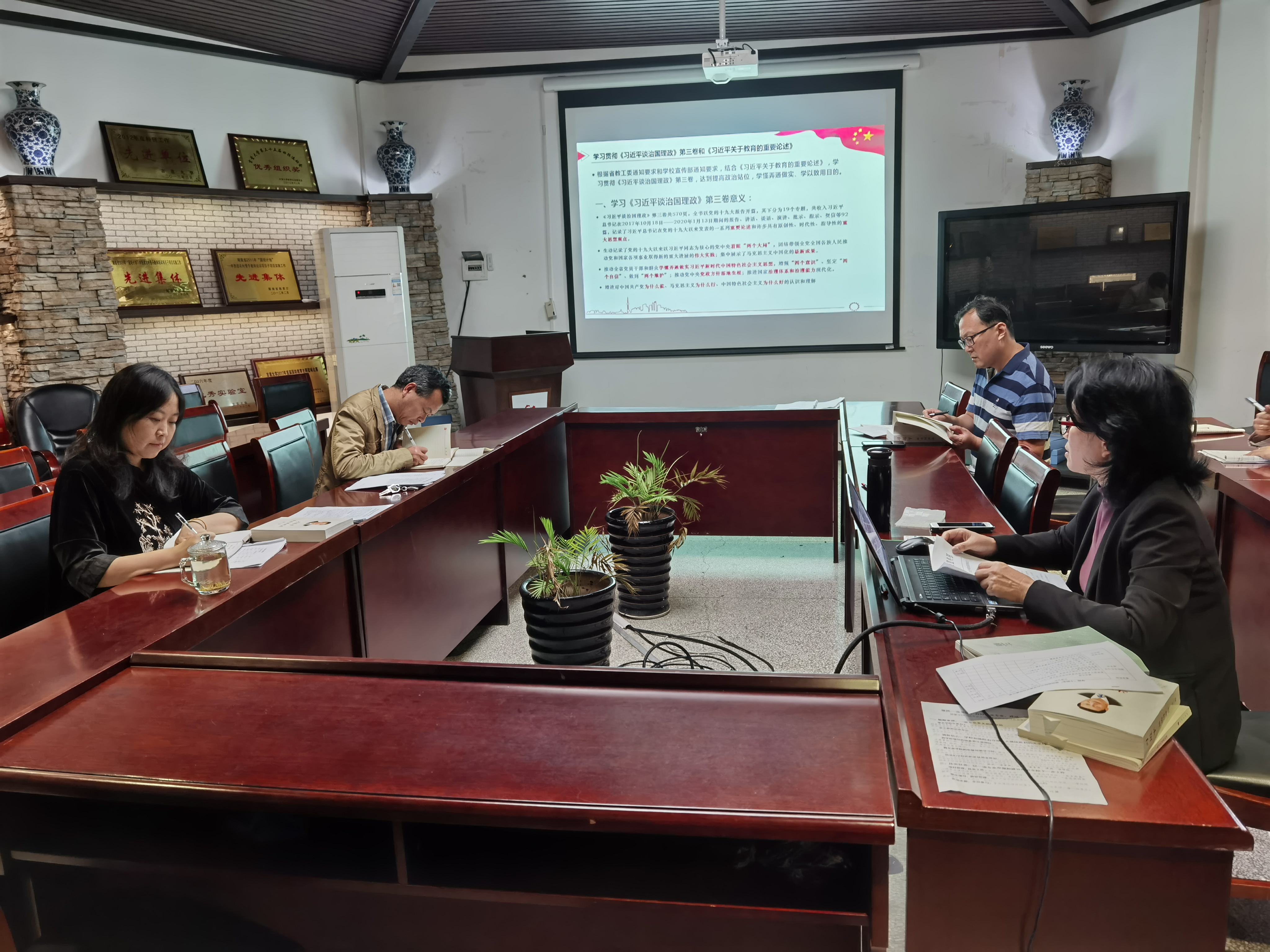 根据吉大宣字[2020]11号文件——关于做好学习贯彻《习近平谈治国理政》第三卷的通知要求,王书记带领中心组成员共同学习了《习近平谈治国理政》第三卷以及《习近平关于教育的重要论述》的内容。