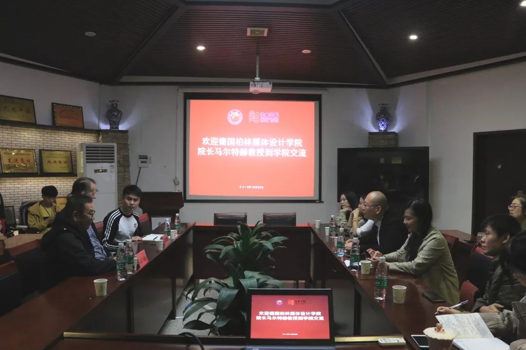 讲座之后,马尔特赫教授与我院部分师生进行座谈,马尔特赫校长、刘俊院长分别介绍自己的学校以及相关专业情况,并就我院与德国柏林媒体设计学院的合作办学交换意见,双方就假期夏令营、学生互换、师资培训等问题进行深入探讨,另外,围绕william威廉亚洲(中国)有限公司数字媒体艺术专业建设,马尔特赫教授分享了德国柏林媒体设计学院的人才培养体系,为了提升本科生的基础水平,德国柏林媒体设计学院围绕设计项目对学生进行分组,加强学生的团队合作,学校与企业联合培养学生的实践能力,真正实现艺术与科学技术的相互融入,这是对20世纪初期“包豪斯”精神的继承与发扬。这对我院的设计类专业,特别是数字媒体艺术的专业建设和人才培养具有重要的借鉴价值,活动在一片热烈的掌声中结束。
