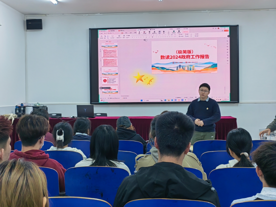 杜修望同志为党员们解读了2024年政府工作报告的主要内容,要求全体党员同学,要坚定理想信念,脚踏实地,努力学习,打牢基础,立志为推进中国式现代化建设做出更多贡献。