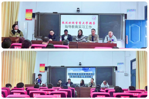 王文广主任发言,对芙蓉学校提供此次实习岗位表示真挚的感谢。强调了实习生的双重身份,既是学生也是老师,希望带队老师叶苏漫能继续担起责任,协助芙蓉学校,共同帮助实习生在美术专业、师范生技能、班主任工作等多方面提升。并对实习生做出期望,希望实习生以教师身份,做到学高为师,身正为范,做好自己,认真完成芙蓉学校安排的各项工作。