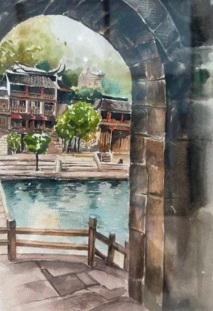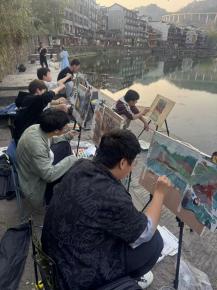 凤凰古镇以其独特的吊脚楼建筑、古老的石板街和浓郁的民族风情闻名于世。在这里,师生们仿佛穿越时空,沉浸在古镇的历史氛围之中。环境艺术设计专业的师生们则关注古镇的空间布局与环境氛围,他们绘制出一幅幅展现古镇空间特色的写生作品,思考如何在现代环境设计中借鉴古镇的智慧为未来的环境设计项目积累了丰富的素材。数字媒体艺术专业的师生们则利用数字技术,捕捉古镇的光影变化与人文故事,制作出一系列富有创意的数字艺术作品,展现了凤凰古镇的独特魅力。