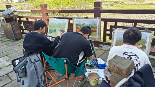 同学们满怀对艺术的热爱与向往,踏足这片令人心醉的乡土。他们手中的画笔,不仅是与世界沟通的桥梁,更是心灵的寄托与梦想的舞台。在这里,同学们可以寻找灵感、捕捉光影,用画笔记录下每一个触动心灵的瞬间,还可以更深入地与这片土地的人文风情和古老村落对话,感受着岁月的沉淀与历史的厚重。创作出具有古韵和特色的作品,还可以感受到大自然的无限魅力,将其融入到作品中,使画面更加生动自然。
