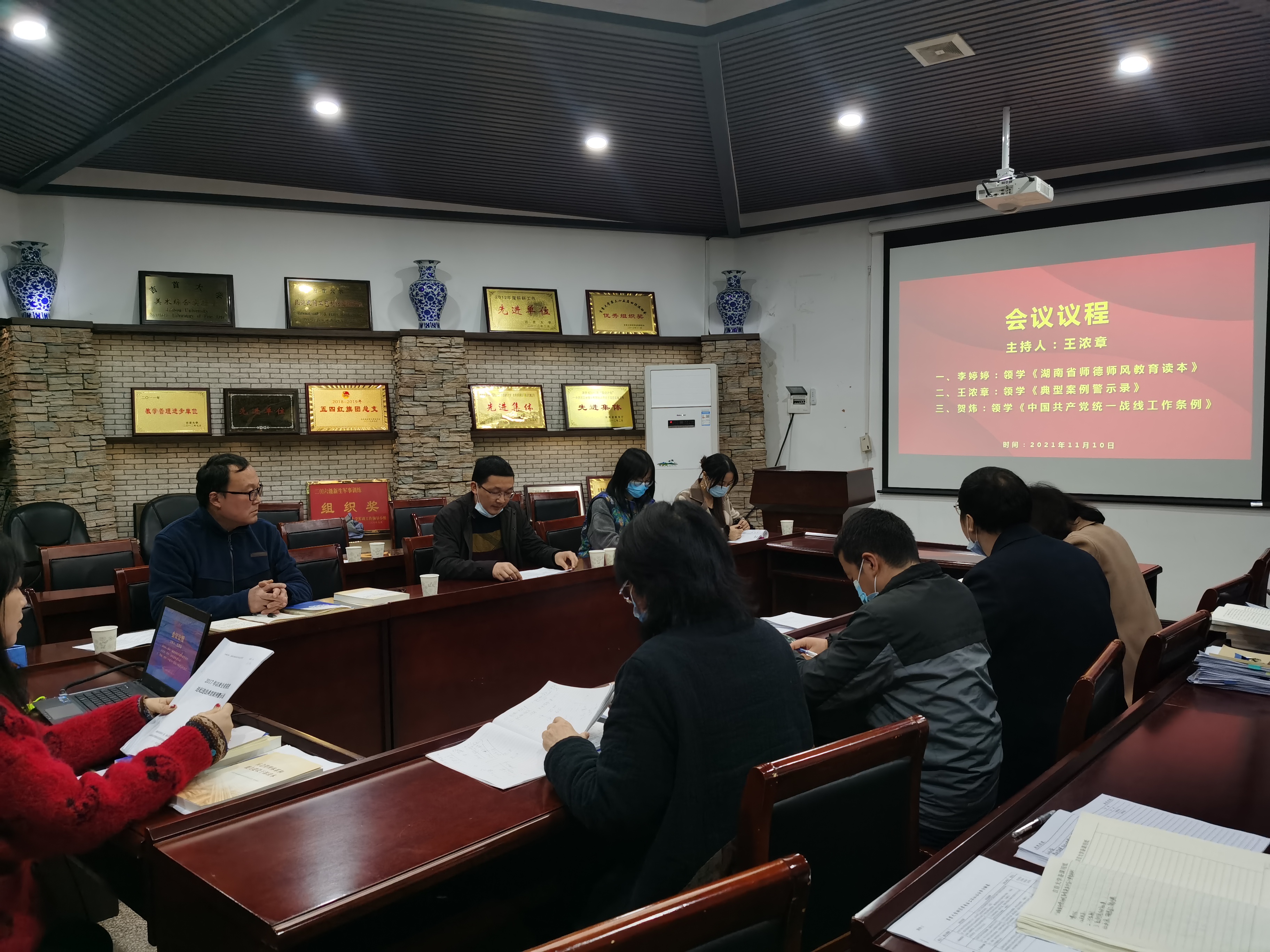 11月10日下午,william威廉亚洲(中国)有限公司召开《湖南省师德师风教育读本》、《典型案例警示录》及《中国共产党统一战线工作条例》集中学习,学习由学院书记王浓章主持,学院全体行政工作人员参加了本次学习。