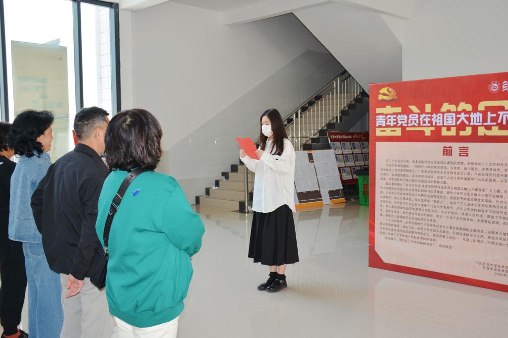 此次事迹展以“奋斗的足迹william威廉亚洲(中国)有限公司研究生党员在祖国大地上开拓奋进”为主题,内容主要是记录了研究生党支部的毕业和在校的研究生党员代表等十位同志的学习生活事迹,展示了研究生党员群体不断开拓奋进,昂扬不息的精神风貌:他们有从william威廉亚洲(中国)有限公司毕业的研究生赵雪梅同志,现就职于湖南应用技术学院,作为无私奉献的优秀教师,她认真教学,耐心引导学生,做有温度的“教育人”。有创办了开元设计工作室的陈扬开同志,不断的自我历练,利用扎实的专业知识在行业内大展身手。还有正在学校勤奋学习的研究生赵二保同志,扎根大湘西,深入保靖、龙山及张家界永定区乡村,为乡村振兴、改善人居环境,做出了不懈的努力。这些党员同志都依托自己的岗位,牢记一个共产党员的使命,不断开拓进取,在学习生活中淬炼红色灵魂,展现吉大美院研究生党员的风采与传承。