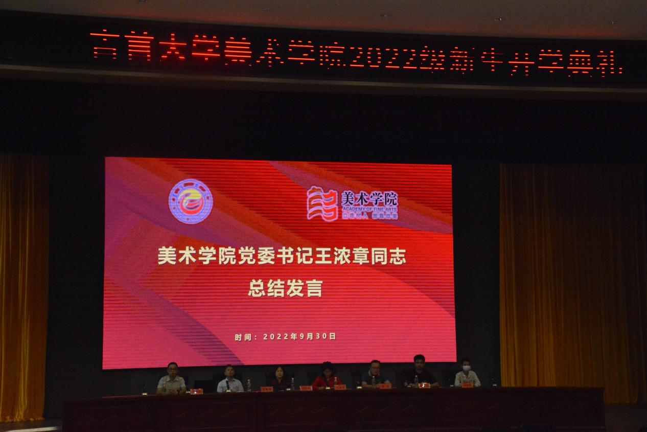 学院党委书记王浓章做总结发言,她要求全体新生要牢记院长的讲话精神,践行学院“立德树人、崇真尚美”的院训;牢记老师的话,学会学习、学会做事、学会做人;牢记师兄的话,坚持求真务实,将所学与社会需要相融合,立志成为“四有”人才。同时,她对全体新生提出了四点希望:一是要调整好自己的“阳光心态”;二是自信、自立、自强;三是学知识、学做人;四是立志向、定信念。她希望新同学们以新的志向开启新的大学生活,以求真务实的精神,践行“以人名校、以业报国”的校训,践行“立德树人、崇真尚美”的院训,以更多艺术创作,讲好时代故事,为国家的艺术传承、发展与创新而终身奋斗。