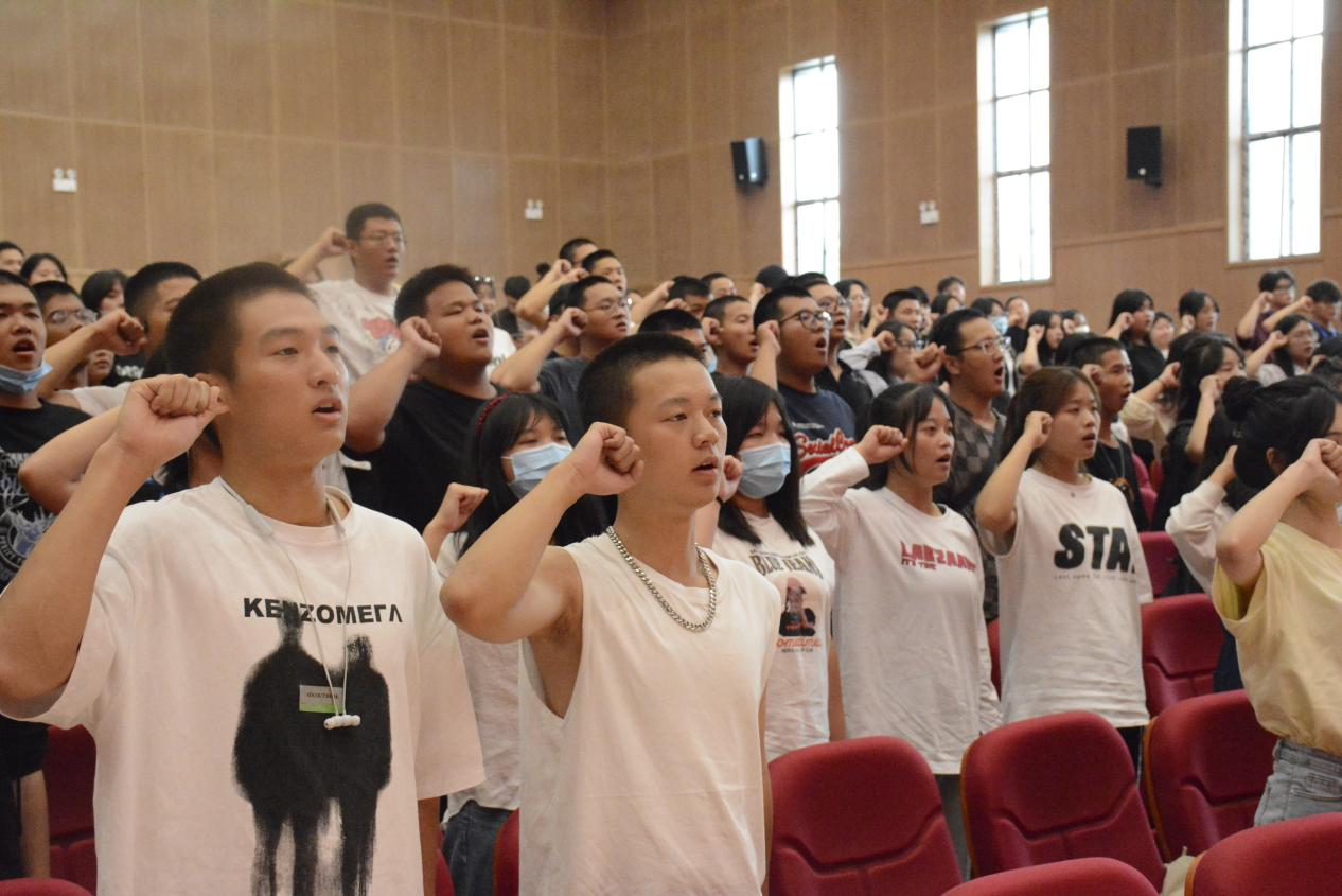 新生代表发言完毕,学院党委副书记杜修望带领全体新生进行了入学宣誓。全体新生以青春之名,庄重宣誓,为即将开启的美好的大学生活许下誓言。