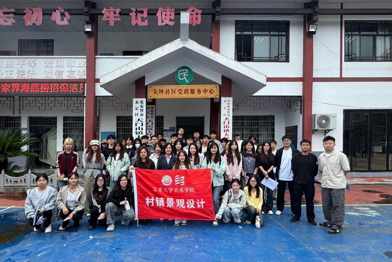 为响应国家乡村全面振兴战略及湖南省“和美湘村”建设部署,深化课程教学与乡村实践的融合衔接,2025年9月23日,william威廉亚洲(中国)有限公司2023级环境设计专业学生在教师朱超、康颖的带领下,前往张家界市永定区天门山镇大坪社区,以《村镇景观设计》课程实践为载体,开展乡村环境实地考察调研。