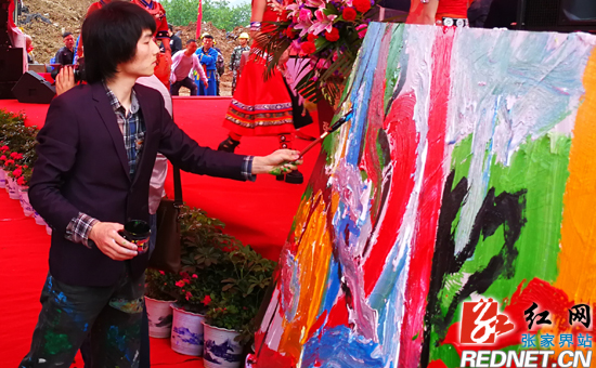 青年画家田浩文现场创作涂鸦作品,欢迎世界各地涂鸦艺术者到张家界创作