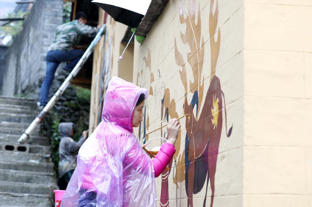 图绘美丽乡村,将“精准扶贫”政策解读融入艺术,不仅美化了村容村貌,丰富了群众的精神文化生活,又鼓舞了群众加快脱贫步伐的勇气和信心,营造了脱贫攻坚的良好氛围,成为十八洞村人民建设美丽乡村的一道靓丽风景。