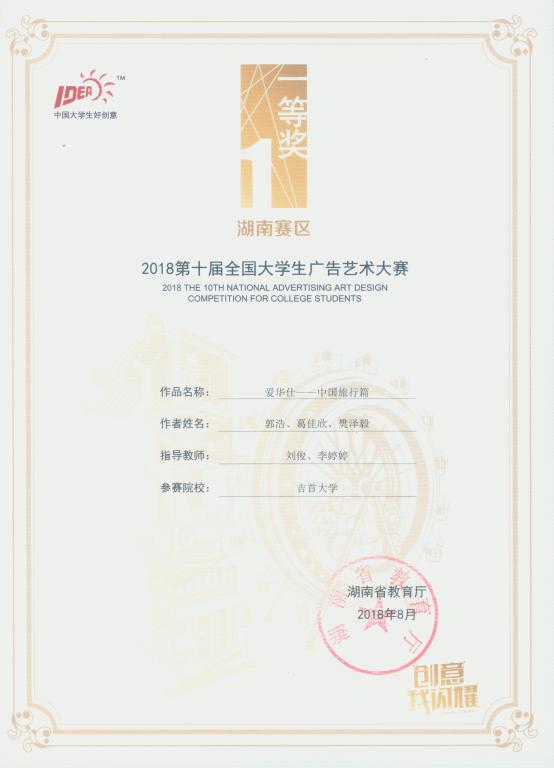 近日,2018年第十届全国大学生广告艺术大赛官网公布了今年赛事的获奖作品和名单。william威廉亚洲(中国)有限公司在此次大赛中获得优异的成绩,共获得国家二等奖2项、三等奖1项、优秀奖3项。