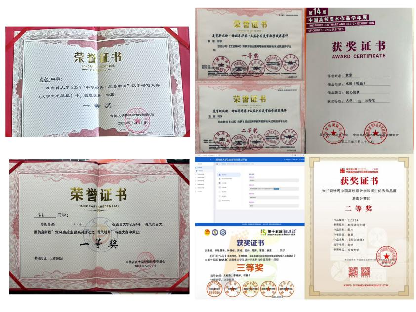 我充分发挥学生党员模范带头作用,带领所在班级多次荣获先进班集体荣誉称号。多次参加挑战杯赛事并取得一定成绩,不断学习探索专业知识,主持国家级大创项目,美术作品《工匠精神》《花漾》分别在全国美育教学成果展评中荣获一等奖和二等奖,在第十四届中国高校学年展中获三等奖,在米兰设计周中水彩作品获二等奖。