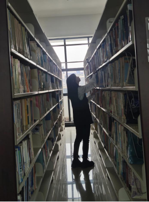 图为王译聆在吉首大学图书馆寻找书籍
