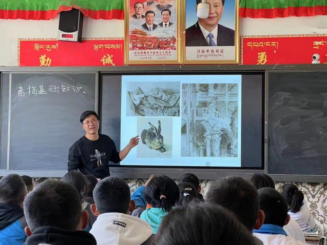 2021年7月,刚刚毕业的2017级校友杨鹏,面对身边同学走向大城市、回家乡考编的大潮之中,毅然决然的抓住机会,通过层层选拔成为了一名援藏美术老师。一年以来,在雪域高原上任教的杨鹏未被艰苦的环境所吓倒,他磨砺出了更坚韧的意志与信念、认识到了更多志趣相合的援藏同志、有了一批敬爱自己的学生,切实将专业与理想融合,肩负起了新时代的历史责任。