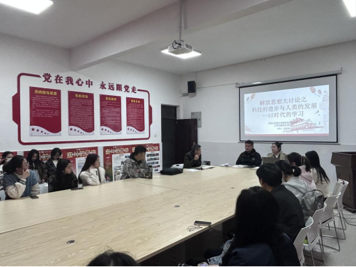 观看视频后,全体党员就AI技术给个人专业带来的发展开展热烈讨论,轮流分享自己的专业与“AI”的密切关联,以及对未来学习工作的启发。