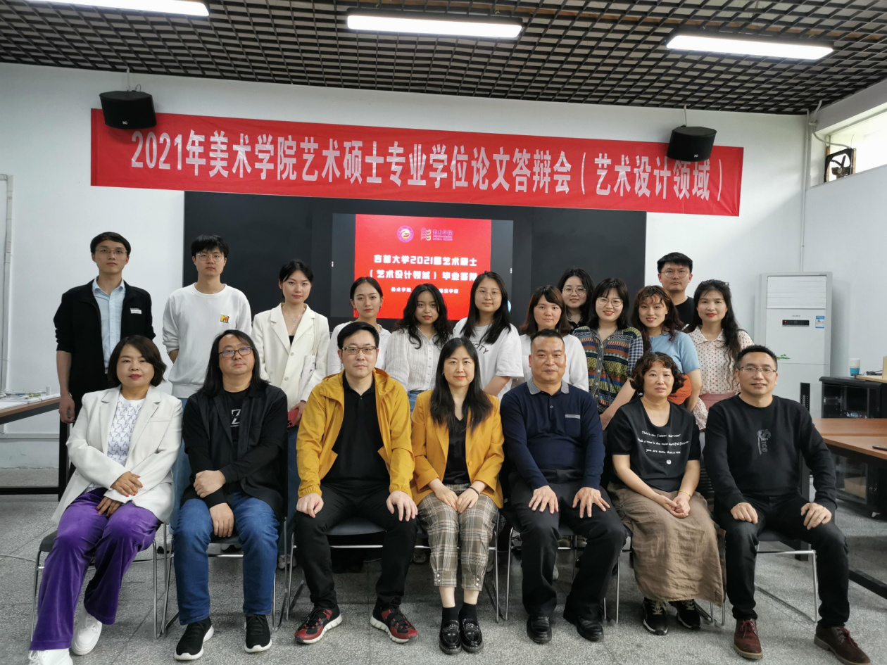 视觉传达与数字媒体艺术方向答辩会场答辩委员会专家与研究生合照