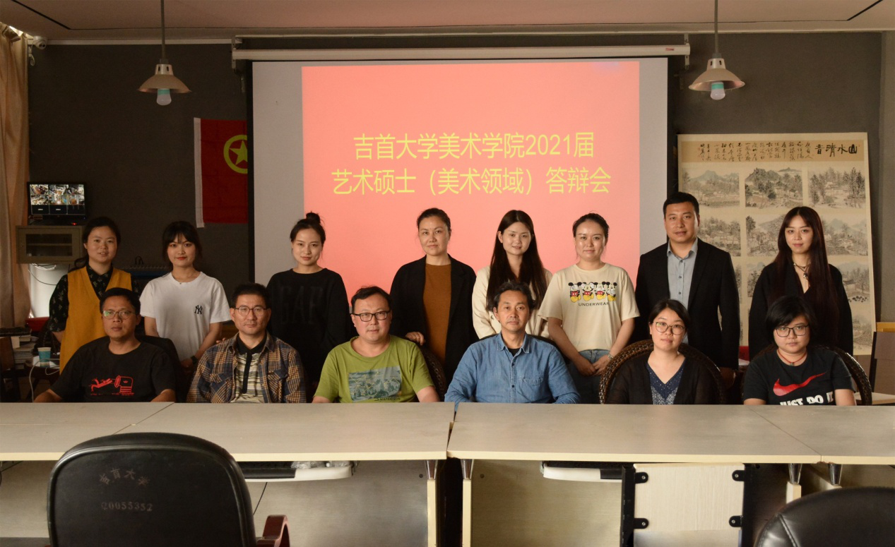 美术领域答辩会场答辩委员会专家与研究生合照