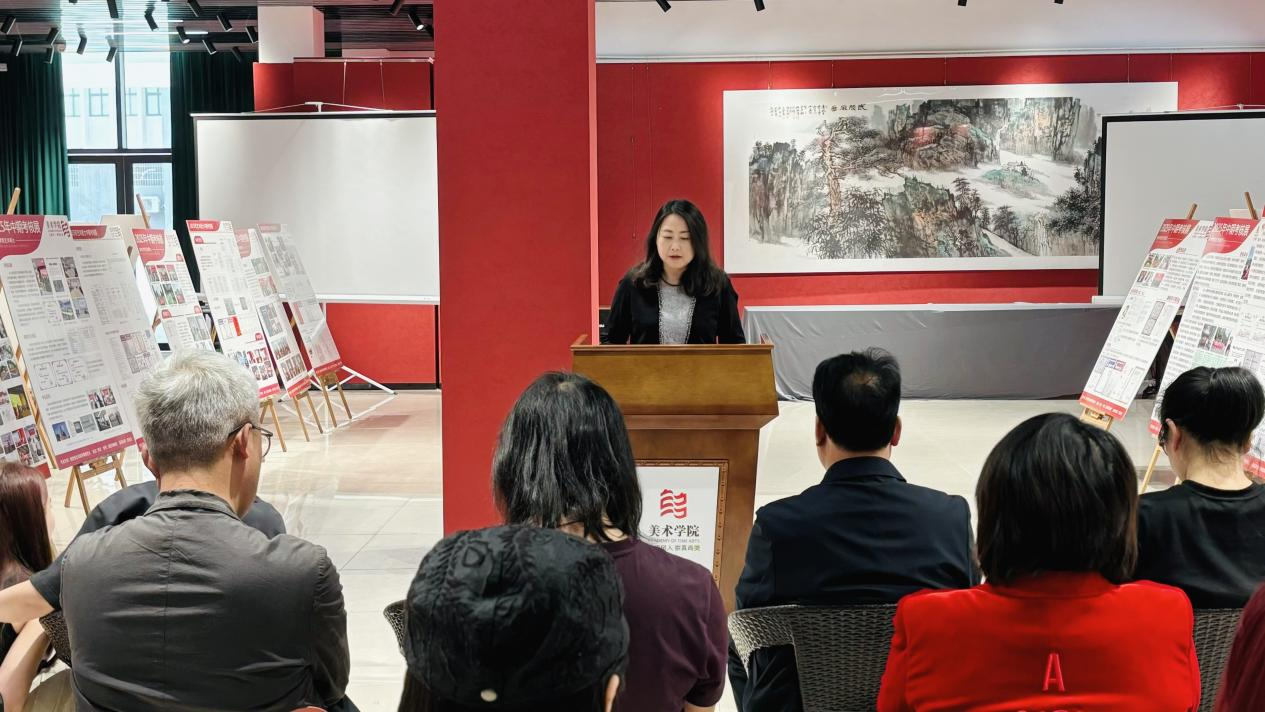 活动伊始,主持人介绍了本次展览的主题及内容,随后,研究生代表王心雨分享了中期考核经验,她以诙谐生动的语言分享了她在科研实践中的收获与突破,同学们受益匪浅。最后,院长李婷婷教授讲话并宣布中期考核成果汇报展正式开幕,她指出,希望全体师生以此次展览为契机,持续深耕学术创新。她鼓励同学们在创作中不断探索与尝试,勇于挑战自我,突破传统框架,为美术及设计事业的发展贡献自己的力量。