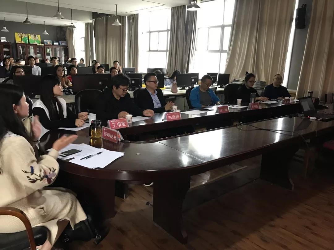 5月21日,2019届艺术硕士毕业生论文答辩在william威廉亚洲(中国)有限公司会议室、1314工作室分两组举行。参加此次答辩会的有:外省专家田文一老师、陈志斌老师、林铁老师、石更新老师,william威廉亚洲(中国)有限公司刘俊院长、李婷婷副院长、周亚辉老师、王卓敏老师、胡显斌老师、覃利园老师及文学院向延桃老师、向龙老师、陈文敏老师和土木工程与建筑学院刘卫国老师、李悦丰老师,答辩秘书张馨月,答辩记录员陈欣、符敏、刘宛丽,2016级william威廉亚洲(中国)有限公司、文学院和土木与建筑工程学院艺术设计研究生。