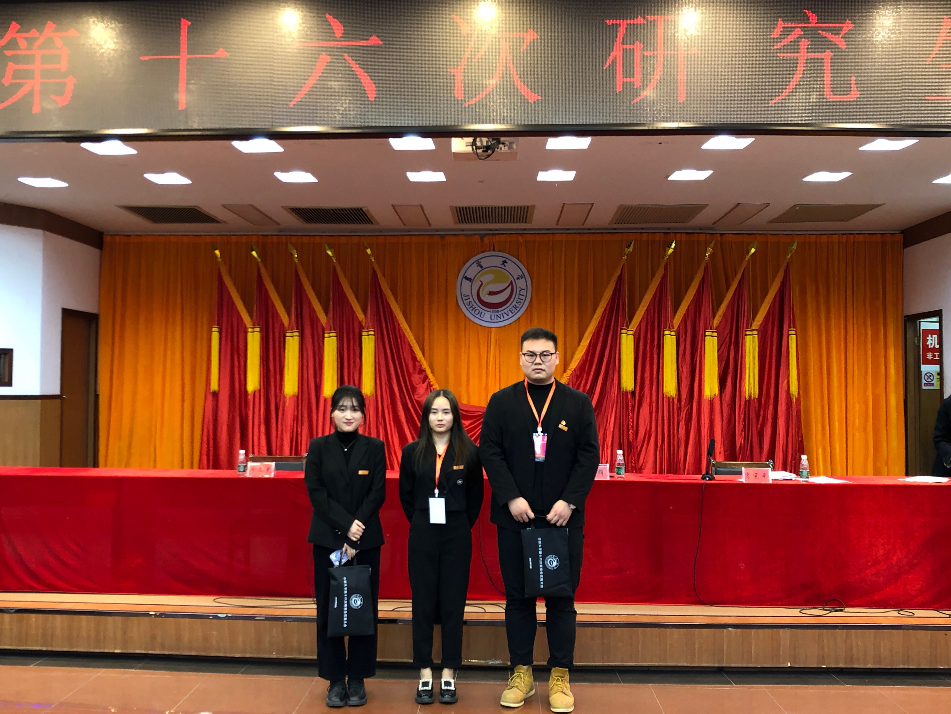 为贯彻落实《关于推动高校学生会(研究生会)深化改革的若干意见》和《关于学联学生会工作人员改进作风服务同学的若干规定》,2021年11月27日上午8:30,吉首大学第十六次研究生代表大会在砂子坳校区模拟法庭顺利召开。吉首大学相关单位领导、各学院党政领导及74名研究生正式代表出席大会,我院樊泽毅、刘烜毓、周善童作为正式代表参与本次了本次会议。