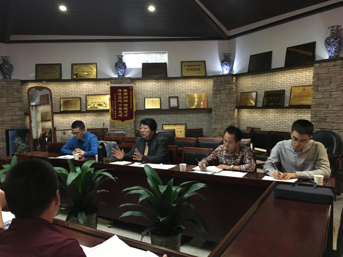 从左至右:胡显斌博士、周亚辉博士、刘俊院长、王浓章书记