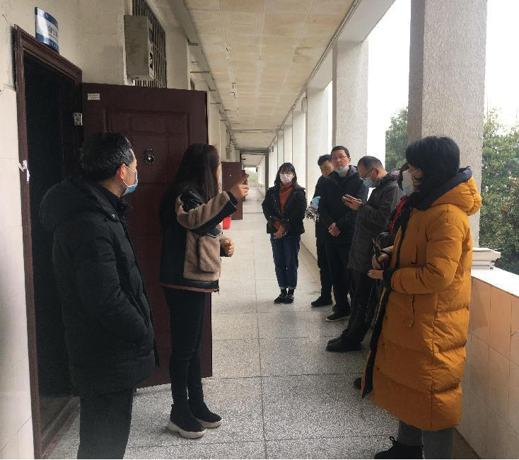 安全卫生检查现场:副院长李婷婷(中间)、党委副书记杜修望(左一)、研究生办主任龙社勤(右一)