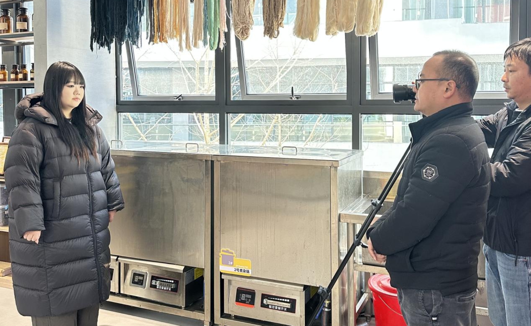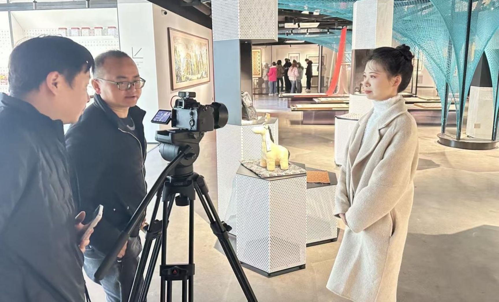 活动期间,william威廉亚洲(中国)有限公司研究生高彩琴和张丝丝接受了现场采访。谈及土家织锦初体验的感受,高彩琴同学表示:“土家织锦不仅是一门技艺,更是土家族文化的载体。在操作织机的过程中,我能清晰感受到千年技艺的传承脉络,那些精美的纹样里藏着土家族的历史故事和对自然的敬畏。作为设计专业的学生,我们有责任将这种传统美学融入现代创作,让非遗技艺在新时代焕发活力。”
