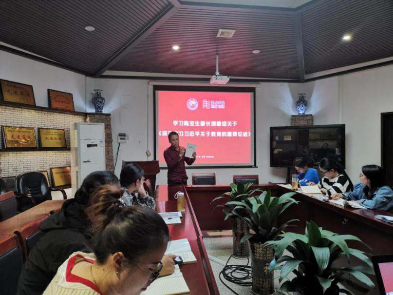 胡显斌书记首先提出当代老师和同学要珍惜给精神补“钙”的机会。通过其自身阅读论述,发现论述可以解决我们观念中的两大问题。并提出疑问,通过9月中旬到11月中旬连续三个月的系统的主题教育学习,如何让老师和同学外驱力的学习变成内驱力学习呢。第一,作为教师党员要不要系统地、认真地学、扎扎实实学?习近平总书记在《十九大报告》中指出“革命理想高于天”,在《紧紧围绕坚持和发展中国特色社会主义,学习宣传贯彻党的十八大精神》中指出“理想信念就是共产党人精神上的‘钙’”。第二,“在进行一线教学和科研的同时,要不要认真学系统地学?”习近平总书记《在北京大学师生座谈会上的讲话》指出“要坚持教育者先受教育,让教师更好担当起学生健康成长指导者和引路人的责任。”
