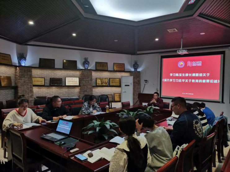 会上胡显斌书记在指导党员们要多学习多珍惜,担使命、履职责,强担当主题教育活动是难得的给精神补“钙”的机会的同时,也在深入学习第一阶段的《论述摘编》到第二阶段的《重要论述》,让支部党员们逐渐明白,我们很多时候认为高等教育的第一关系是师生关系,其实老师之间的关系尤为重要,总之,“教育者先受教育”,因为教育者是一面镜子,所以我们要把心放进去,用心思考,用心去做,去擦亮这面“镜子”。