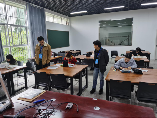 随后,廖文虎主任一行来到复试现场,抽查了部分考生证件并检查了考场相关设备。他对此次研究生复试各项准备工作表示满意,并肯定了工作人员认真负责的态度。