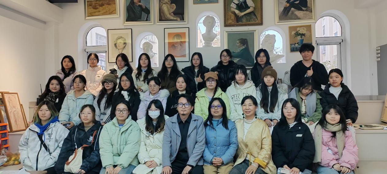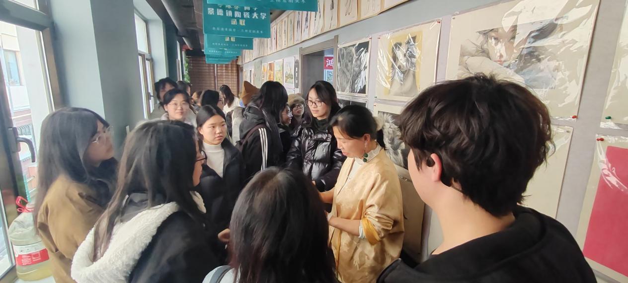 敦煌清美艺术培训学校(以下简称清美艺校)是敦煌地区品牌画室,也是敦煌市唯一一所全球美育大会战略合作单位。董事长冯世兰向我们详细介绍了学校的办学理念、办学特点、课程设置、取得的教学成果等情况。金陵老师也就当今大学生就业困难的现状跟艺校几位老师做了深度交流与沟通。美术学学生们纷纷发言,就就业的困惑、内心的迷茫等问题,向冯世兰老师请教。冯世兰建议大学生要摈弃传统就业思维模式,更新就业理念,就业不必局限于公立中小学校,艺术培训机构也是一个适合美术学学生就业的去处。毕业之后要尽快就业、融入社会,不要蹲在家里打着考公考研幌子做新型的啃老族,可以一边工作一边继续学习。她还鼓励吉首大学美术学专业的优秀毕业生来清美艺校工作,来敦煌市工作。