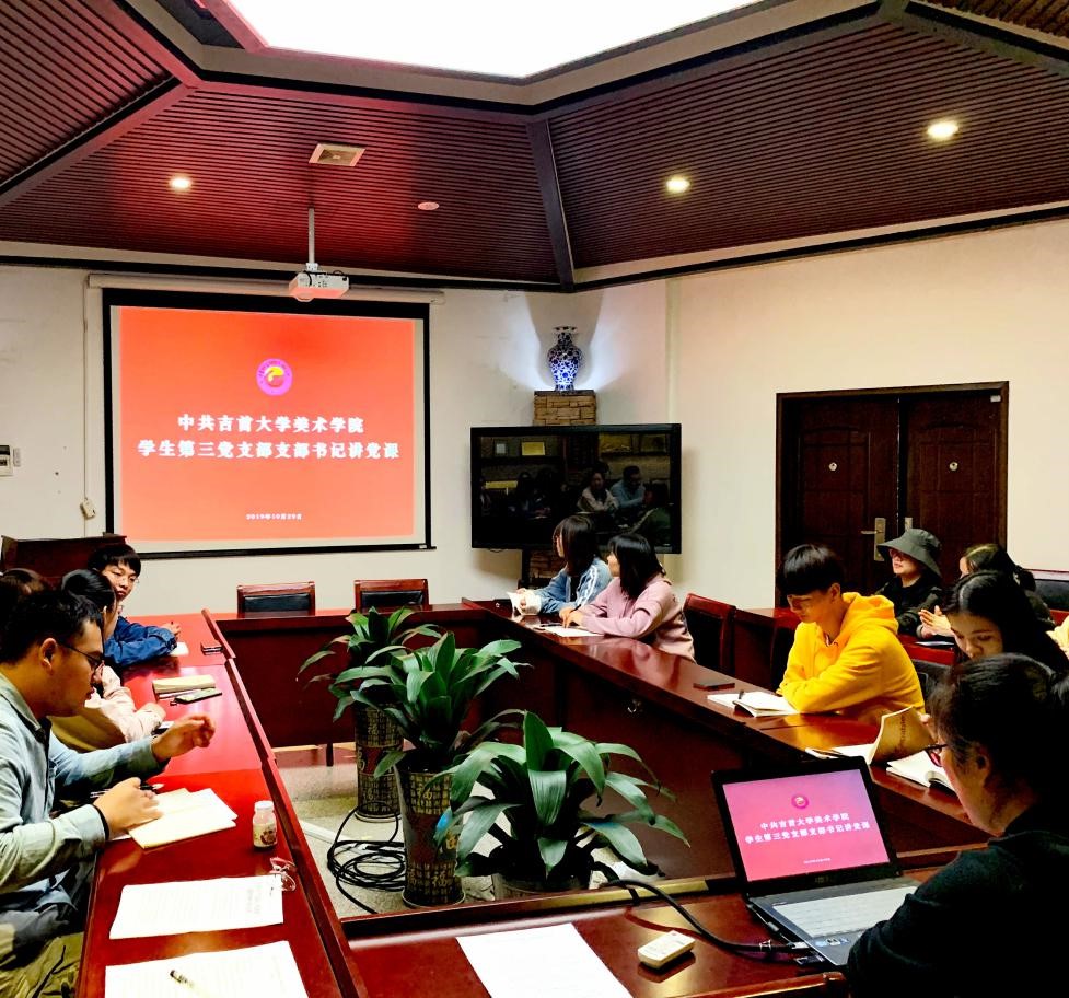 根据年度工作计划,10月29日晚18:00,学生第三党支部书记周亚辉在院会议室给支部党员上了一堂有意义、有深度的专题党课,课程主题是:学生党员如何发挥先锋模范作用。