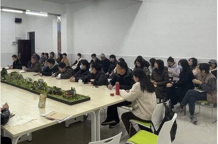 图为教职工集中观看现场