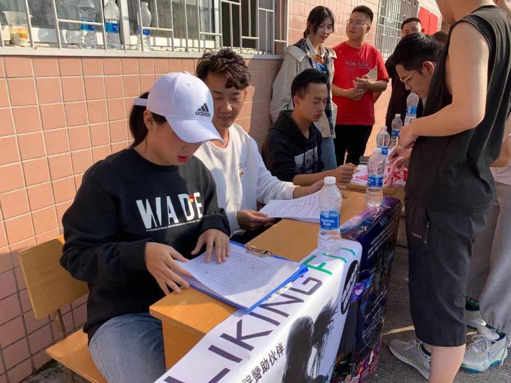 本科二支部配合学生会体育部工作人员,负责运动员领取号码牌、后勤补给、意外突发事件处理等工作。